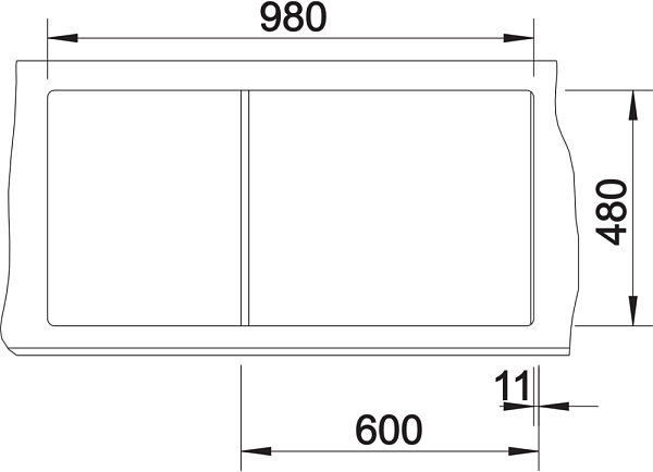 *Учитывать ширину пристенного канта в случае установки мойки возле стены или пенала.