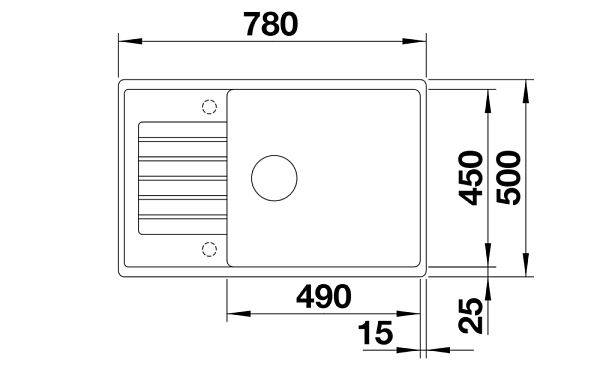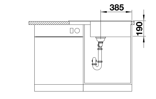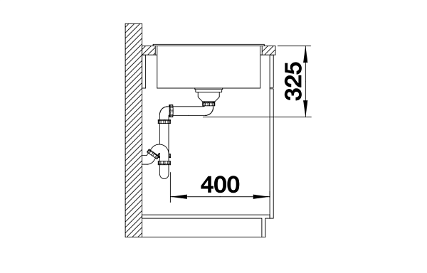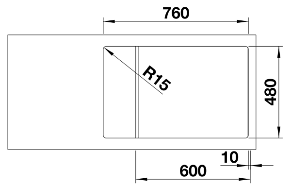 *Учитывать ширину пристенного канта в случае установки мойки возле стены или пенала.
