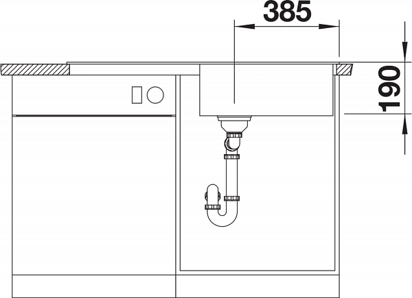 *Учитывать ширину пристенного канта в случае установки мойки возле стены или пенала.