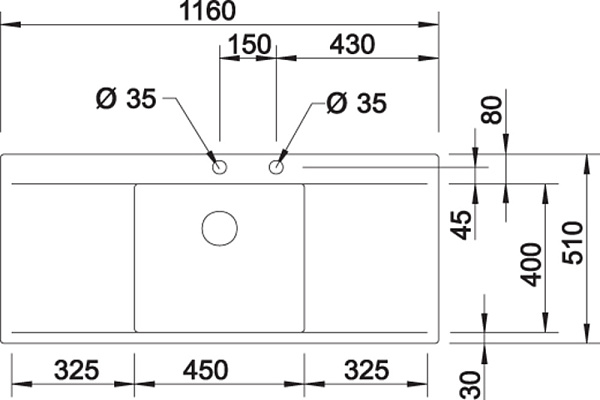 Симметричный дизайн с расположенной по центру основной чашей и крыльями мойки с обеих сторон