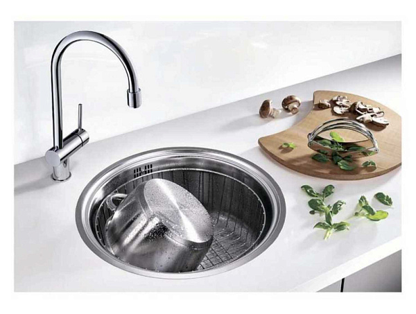 Наруглая мойка придает кухне индивидуальный характер
