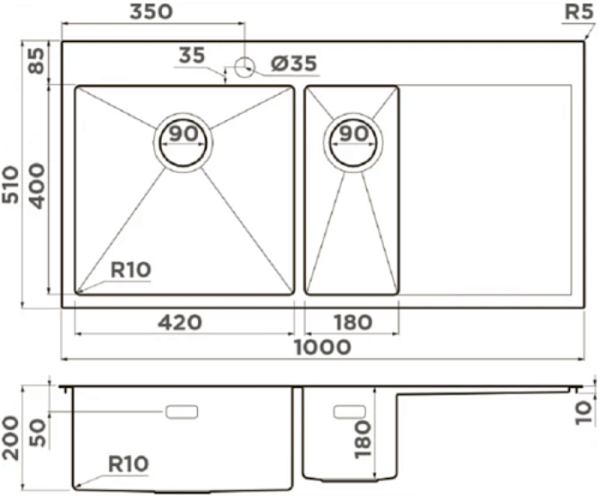 OMOIKIRI AKISAME 100-2-IN-L мойка нержавеющая сталь