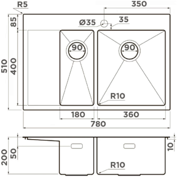 OMOIKIRI AKISAME 78-2-GM-R мойка нержавеющая сталь