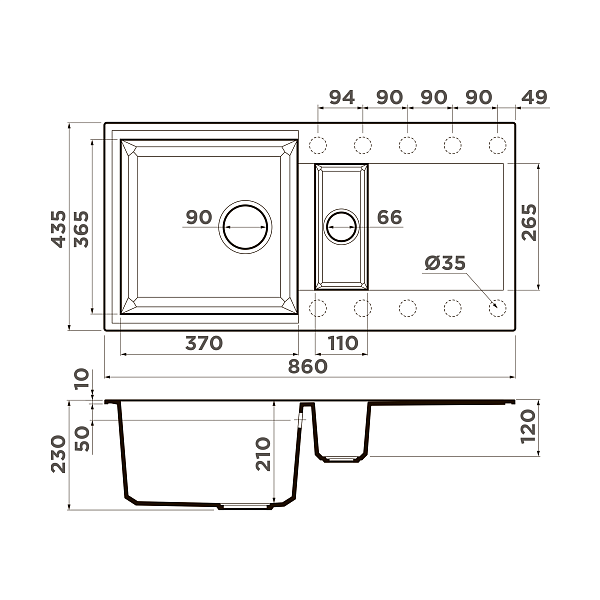 OMOIKIRI SAKAIME 86-2-BE мойка ваниль