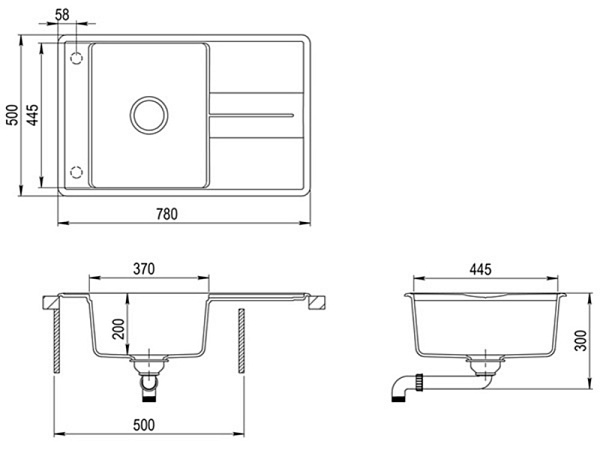 Диаметр слива 3 1/2”, перелив, клапан-автомат