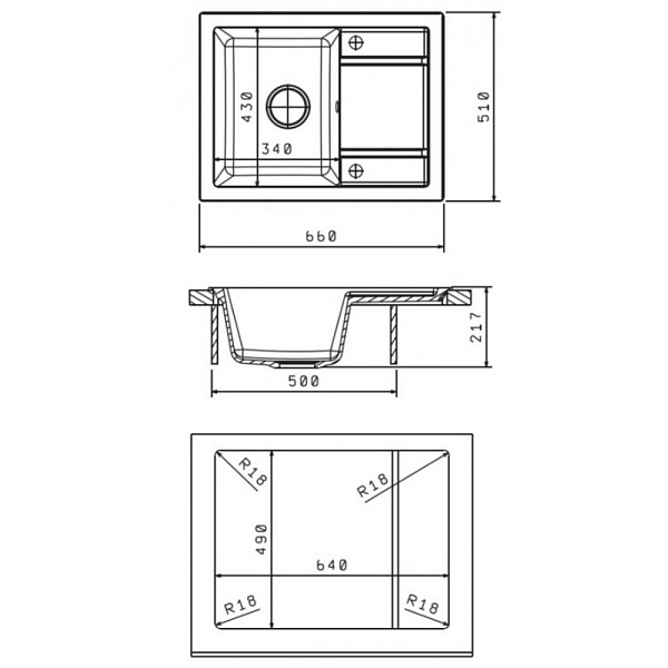 Намеченных отверстий для смесителя 2