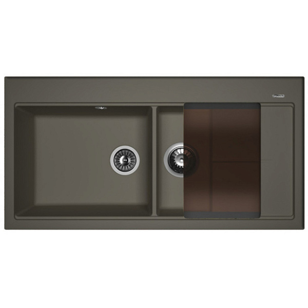 Оснащение Разделочная доска из безопасного стекла, Отводная арматура с двумя корзинчатыми вентилями 3 1/2''