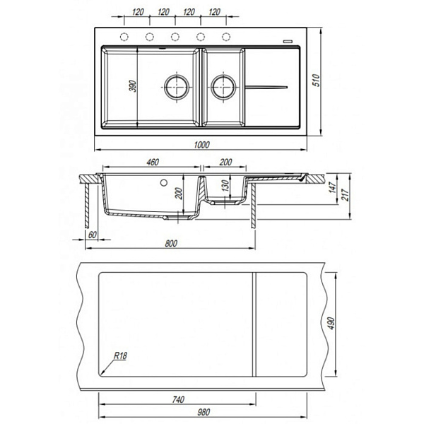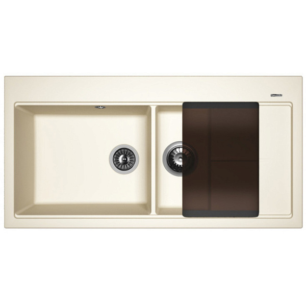 Оснащение Разделочная доска из безопасного стекла, Отводная арматура с двумя корзинчатыми вентилями 3 1/2''
