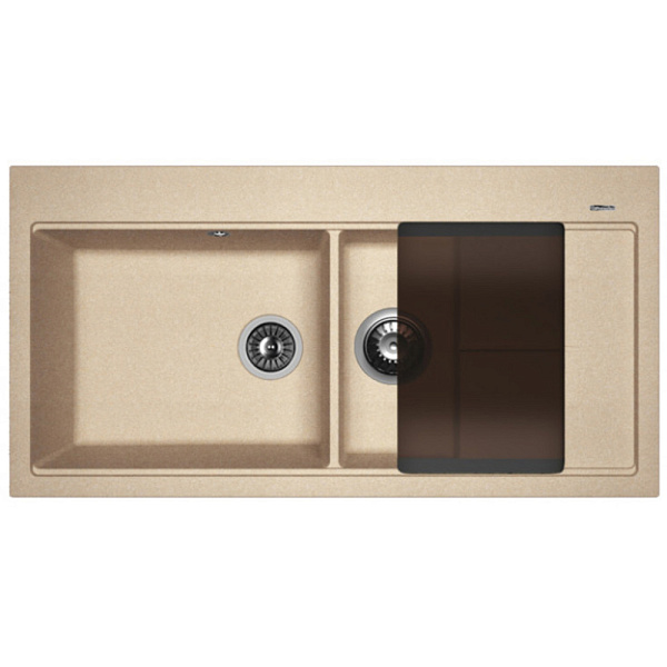 Оснащение Разделочная доска из безопасного стекла, Отводная арматура с двумя корзинчатыми вентилями 3 1/2''