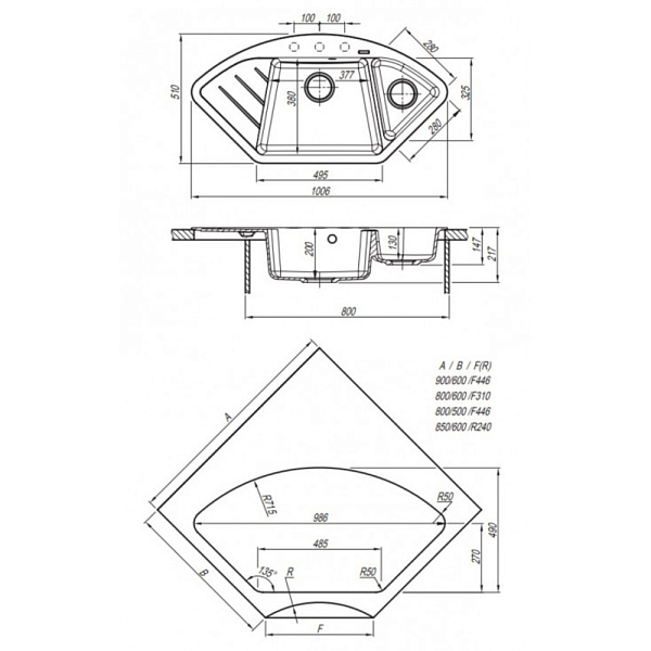 Намеченных отверстий для смесителя 3