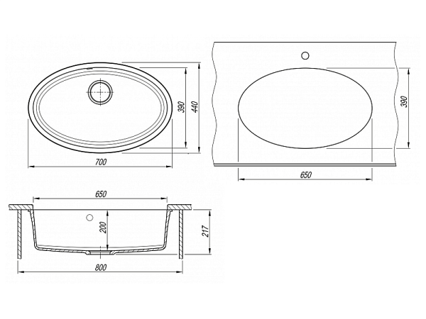 Форма мойки: овальная