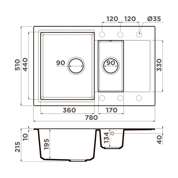 OMOIKIRI DAISEN 78-2-GR мойка серый