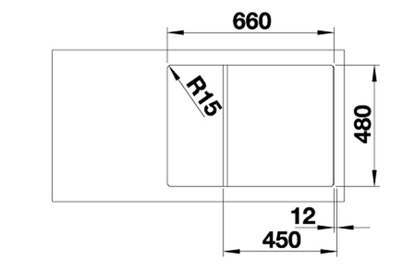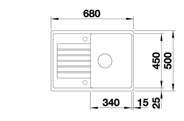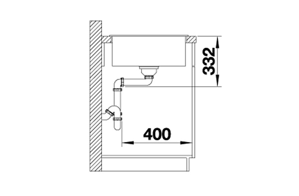 *Учитывать ширину пристенного канта в случае установки мойки возле стены или пенала.