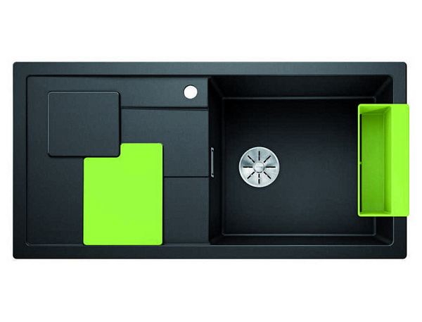 В комплектацию входит практичный набор аксессуаров одного из четырех ярких цветов: лимон, киви, апельсин или лава. Многофункциональная гибкая разделочная доска SITYPad идеально дополняет линии крыла мойки, в то время как коландер SITYBox станет элегантным местом для хранения принадлежностей для