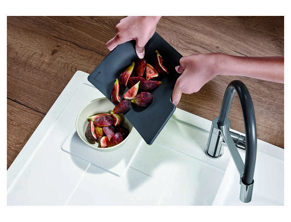 В комплектацию входит практичный набор аксессуаров одного из четырех ярких цветов: лимон, киви, апельсин или лава. Многофункциональная гибкая разделочная доска SITYPad идеально дополняет линии крыла мойки, в то время как коландер SITYBox станет элегантным местом для хранения принадлежностей для