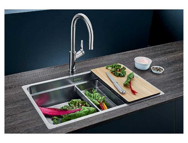 Вместительная ступенчатая мойка с функциональностью моечного центра