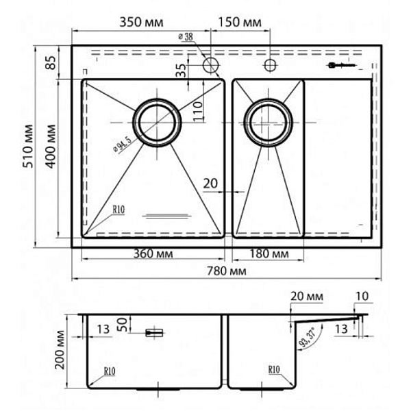 OMOIKIRI AKISAME 78-2-IN-L мойка нержавеющая сталь