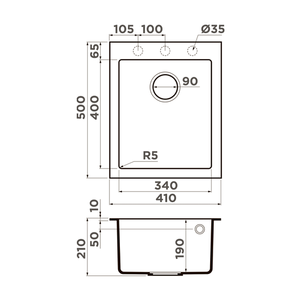 OMOIKIRI BOSEN 41-DC мойка коричневый