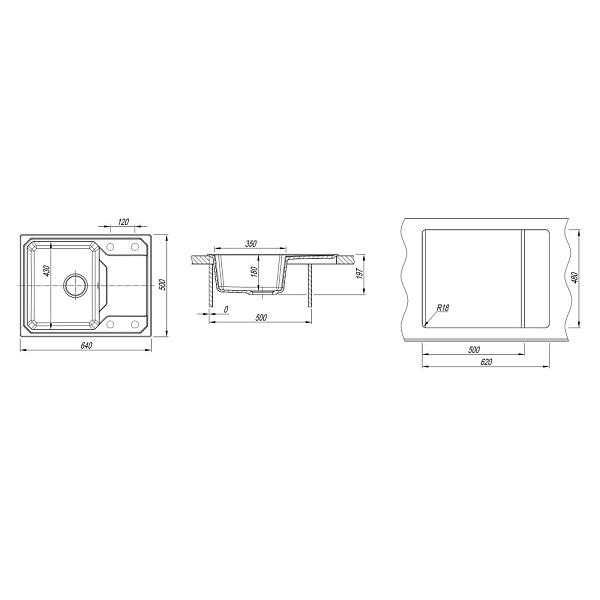 Размеры мойки — 640×500 мм. Она оснащена одной вместительной чашей и оборачиваемым крылом, которое можно использовать как зону для сушки или подготовки продуктов. Врезной тип установки обеспечивает плотное прилегание к столешнице, создавая аккуратный и завершённый вид.