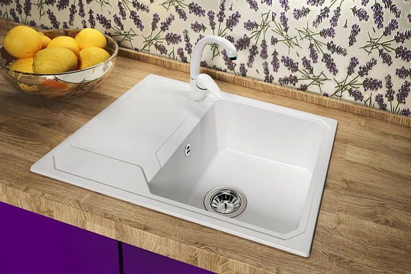 Модель выполнена из искусственного мрамора, обладающего высокой прочностью и устойчивостью к механическим повреждениям, перепадам температур и воздействию бытовой химии. Защитно-декоративный слой придаёт поверхности лёгкий глянец, напоминающий керамику, и облегчает уход за мойкой.