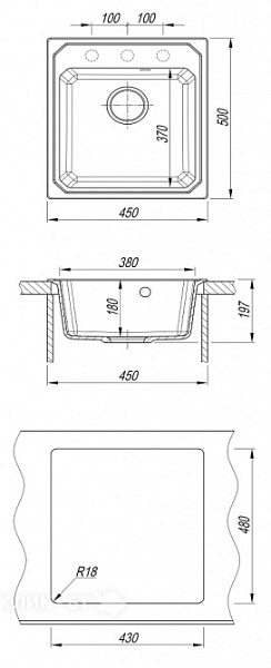 Размеры мойки — 450×500 мм — делают её идеальной для небольших кухонь или встраивания в компактные зоны. Одна глубокая чаша обеспечивает комфорт при мытье посуды, а дополнительное крыло может использоваться как рабочая поверхность или зона для сушки. Встраиваемый монтаж сверху позволяет органично интегрировать мойку в столешницу.