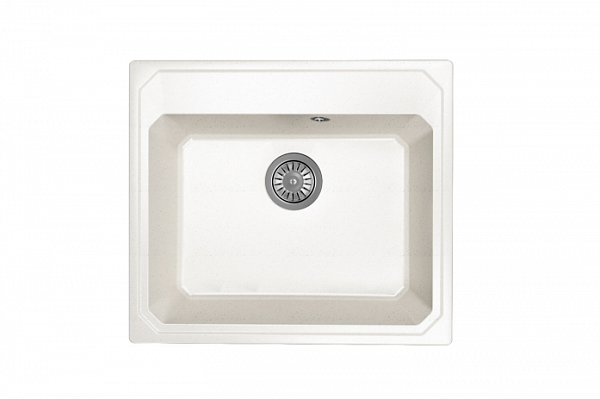 Размеры мойки — 570×500 мм. Она оснащена одной глубокой чашей и крылом, которое удобно использовать как зону для сушки или подготовки продуктов. Прямоугольная форма и врезной тип установки обеспечивают плотное прилегание к столешнице, создавая аккуратный и завершённый вид.