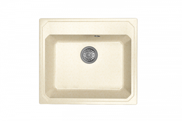 Размеры мойки — 570×500 мм. Она оснащена одной глубокой чашей и крылом, которое удобно использовать как зону для сушки или подготовки продуктов. Прямоугольная форма и врезной тип установки обеспечивают плотное прилегание к столешнице, создавая аккуратный и завершённый вид.