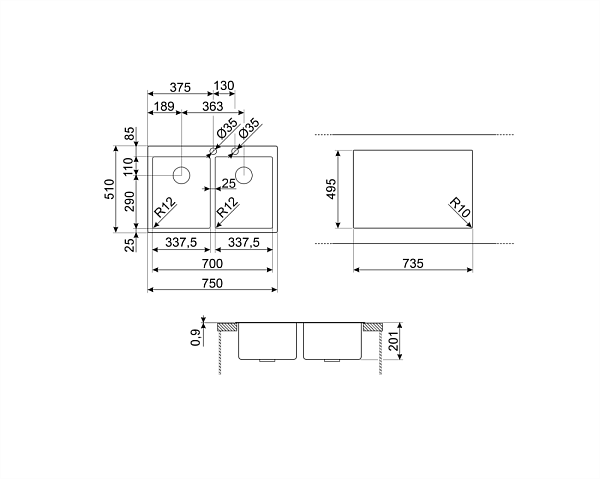 SMEG VR12S3434RS мойка нержавеющая сталь