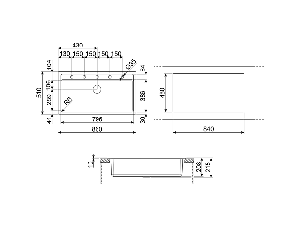 SMEG VSGX860MN мойка черный