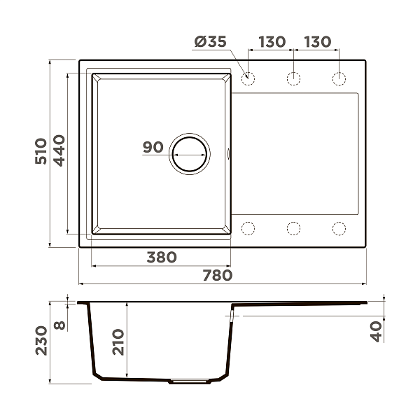 • Материал выдерживает высокие температуры до 280°С (но не стоит ставить на поверхность мойки горячие сковородки и кастрюли, т.к их температура может достигать 500°С).
