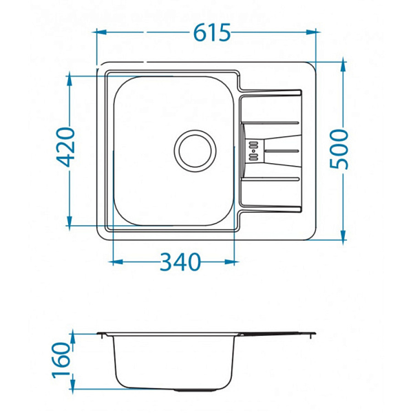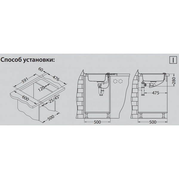 Мойка без площадки под смеситель, в случае выбора данной мойки, необходимо делать отверстие под смеситель в столешнице.