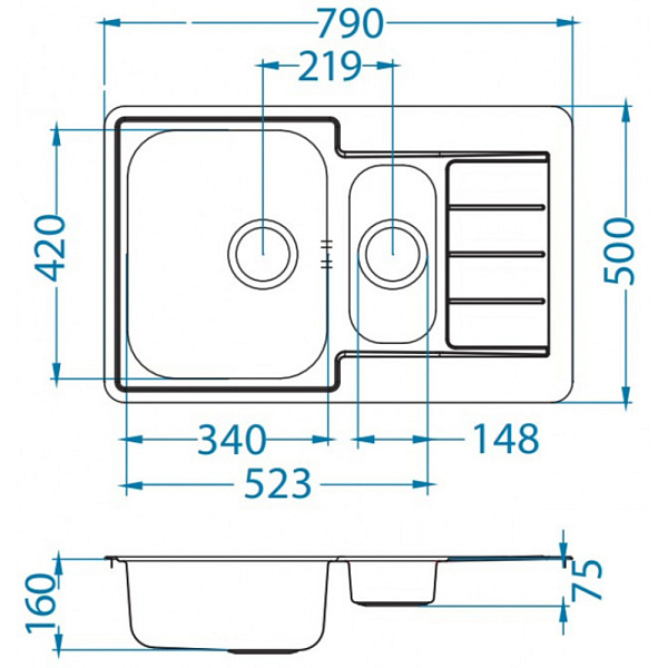 Мойка без площадки под смеситель, в случае выбора данной мойки, необходимо делать отверстие под смеситель в столешнице.