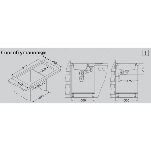 Оборачиваемая мойка - универсальная мойка с крылом, которую в заивисимости от особенностей конкректной кухни можно развернуть в любую сторону, чаша может быть как слева, так и справа