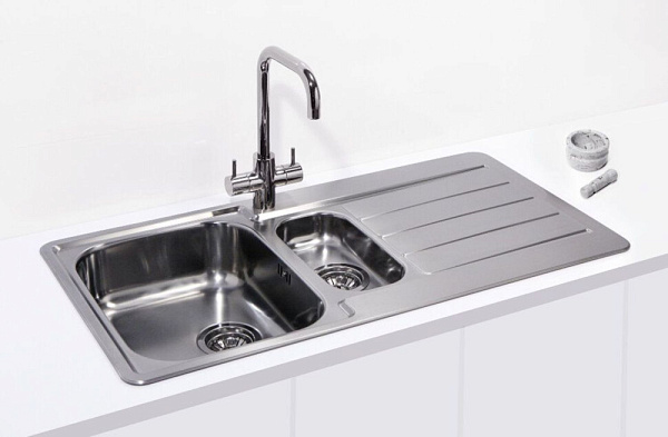 Отсутствие проделанных заранее отверстий в мойке делают ее более универсальной. Вы можете установить смеситель, дозатор, кран ля питьевой воды именно там, где Вам это удобно. Сделать отверстие в мойке можно с помощью обычного домашнего инструмента, и не требует профессиональных навыков.