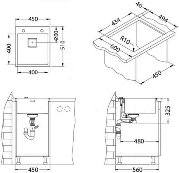 Отсутствие проделанных заранее отверстий в мойке делают ее более универсальной. Вы можете установить смеситель, дозатор, кран ля питьевой воды именно там, где Вам это удобно. Сделать отверстие в мойке можно с помощью обычного домашнего инструмента, и не требует профессиональных навыков.