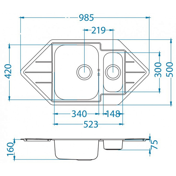 Мойка без площадки под смеситель, в случае выбора данной мойки, необходимо делать отверстие под смеситель в столешнице.