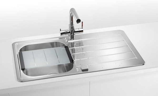 Отсутствие проделанных заранее отверстий в мойке делают ее более универсальной. Вы можете установить смеситель, дозатор, кран ля питьевой воды именно там, где Вам это удобно. Сделать отверстие в мойке можно с помощью обычного домашнего инструмента, и не требует профессиональных навыков.