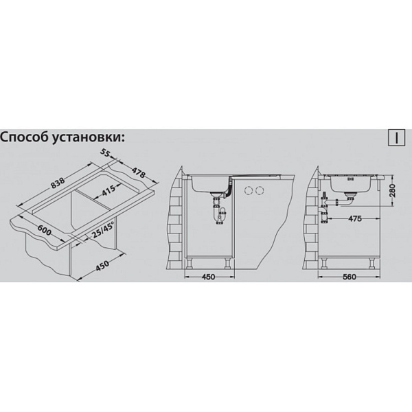 Мойка с площадкой под смеситель, облегчает установку смесителя на кухню, дает дополнительную гарантию герметичности смесителю.
