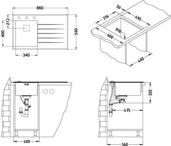 Отсутствие проделанных заранее отверстий в мойке делают ее более универсальной. Вы можете установить смеситель, дозатор, кран ля питьевой воды именно там, где Вам это удобно. Сделать отверстие в мойке можно с помощью обычного домашнего инструмента, и не требует профессиональных навыков.