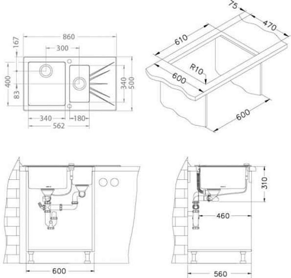Отсутствие проделанных заранее отверстий в мойке делают ее более универсальной. Вы можете установить смеситель, дозатор, кран ля питьевой воды именно там, где Вам это удобно. Сделать отверстие в мойке можно с помощью обычного домашнего инструмента, и не требует профессиональных навыков.