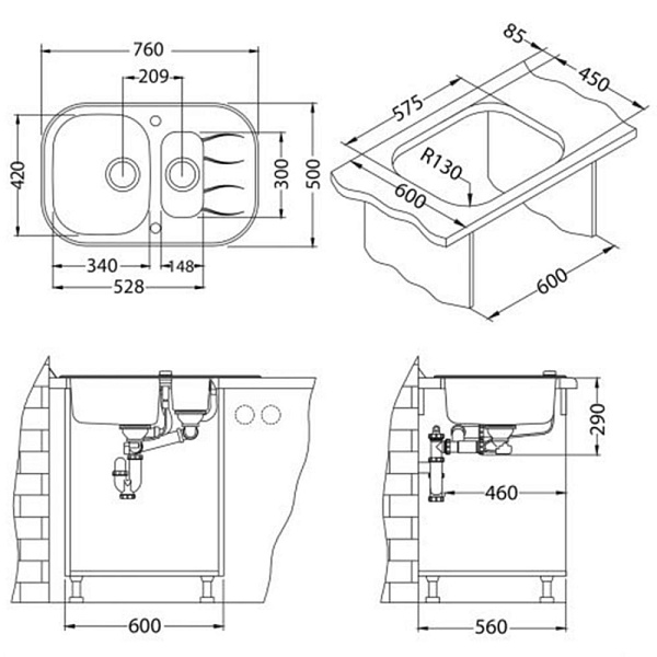 Отсутствие проделанных заранее отверстий в мойке делают ее более универсальной. Вы можете установить смеситель, дозатор, кран ля питьевой воды именно там, где Вам это удобно. Сделать отверстие в мойке можно с помощью обычного домашнего инструмента, и не требует профессиональных навыков.