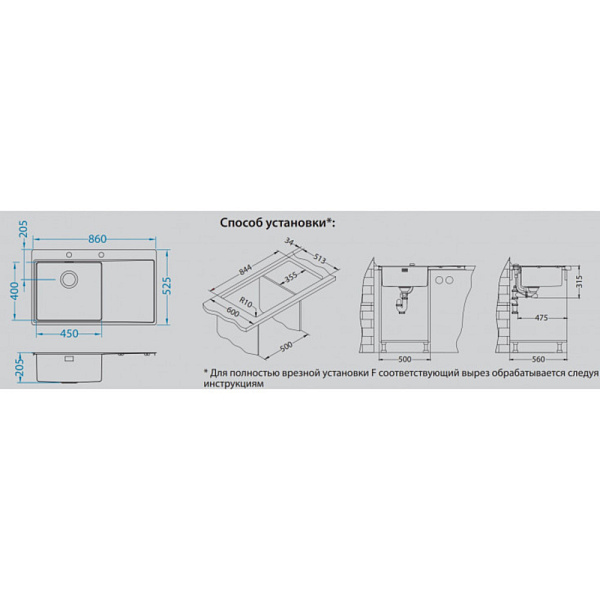 ALVEUS PURE 50R KMB матовая сталь мойка 1103653