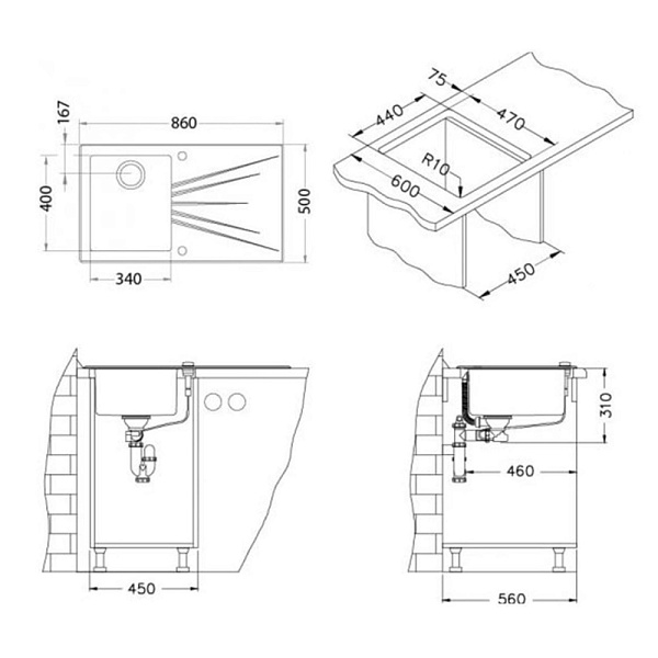 Отсутствие проделанных заранее отверстий в мойке делают ее более универсальной. Вы можете установить смеситель, дозатор, кран ля питьевой воды именно там, где Вам это удобно. Сделать отверстие в мойке можно с помощью обычного домашнего инструмента, и не требует профессиональных навыков.