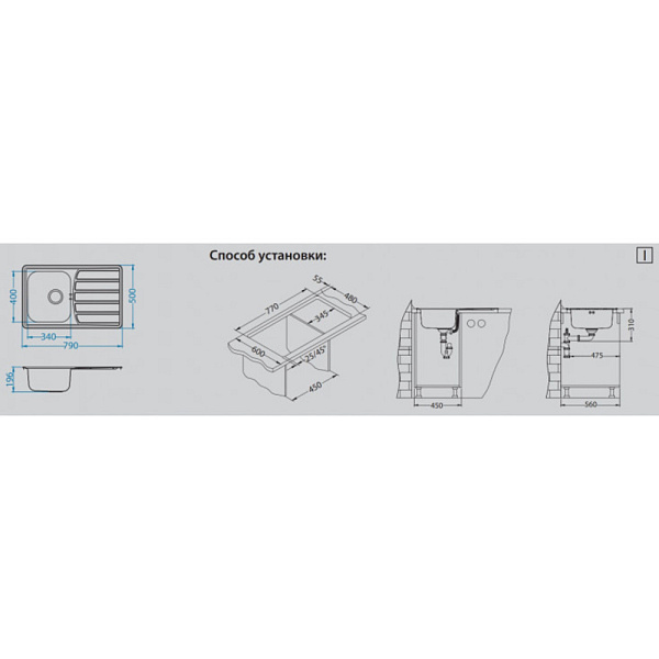 Оборачиваемая мойка - универсальная мойка с крылом, которую в заивисимости от особенностей конкректной кухни можно развернуть в любую сторону, чаша может быть как слева, так и справа