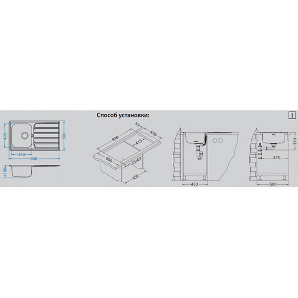 Мойка с площадкой под смеситель, облегчает установку смесителя на кухню, дает дополнительную гарантию герметичности смесителю.