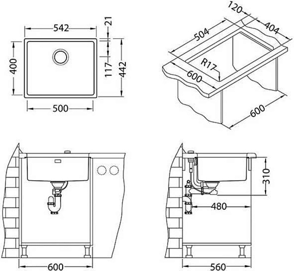 Мойка без крыла - это универсальная мойка, для котрой не нужно много пространства, как на столешнице, так и в кухонном шкафу