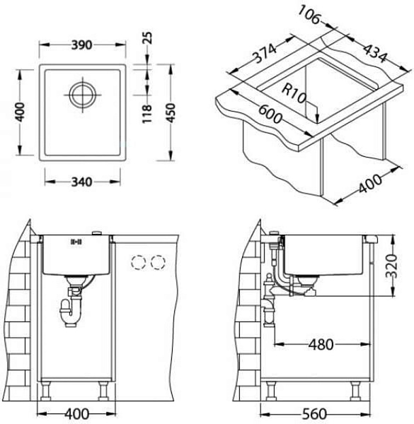 Мойка без крыла - это универсальная мойка, для котрой не нужно много пространства, как на столешнице, так и в кухонном шкафу