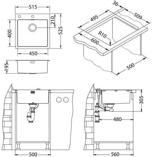 Мойка без крыла - это универсальная мойка, для котрой не нужно много пространства, как на столешнице, так и в кухонном шкафу