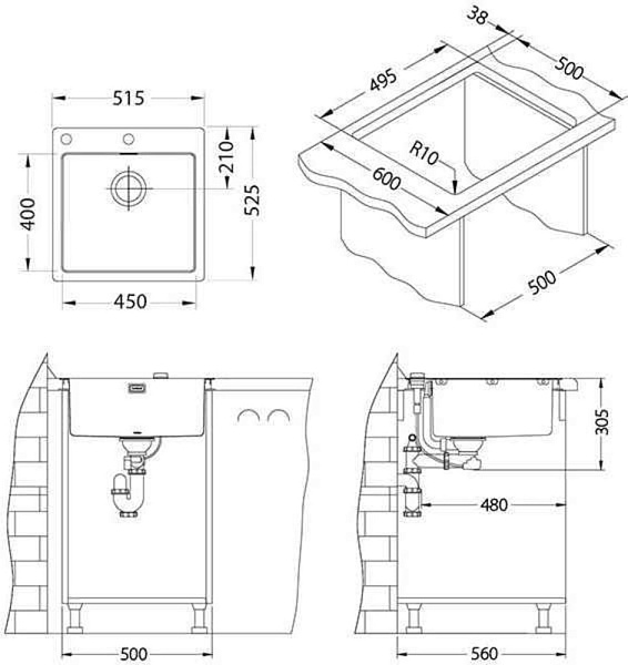 Отсутствие проделанных заранее отверстий в мойке делают ее более универсальной. Вы можете установить смеситель, дозатор, кран ля питьевой воды именно там, где Вам это удобно. Сделать отверстие в мойке можно с помощью обычного домашнего инструмента, и не требует профессиональных навыков.