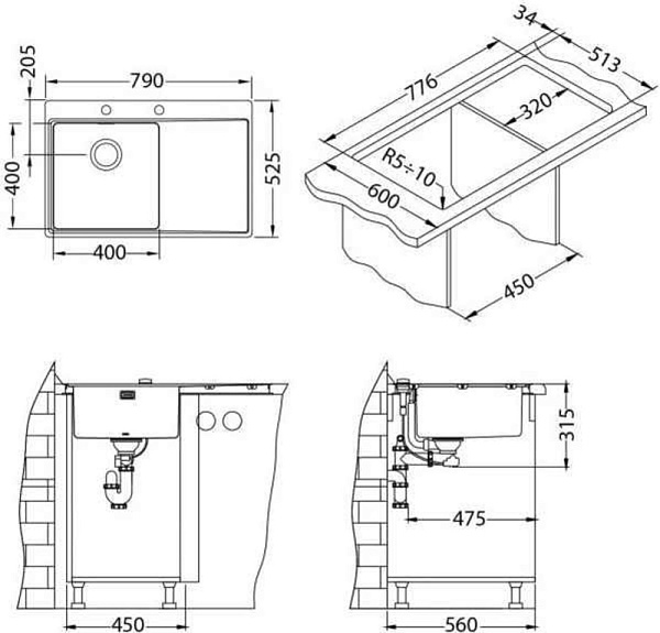ALVEUS PURE UP 40 KMB 90 FI нержавеющая сталь мойка 1123789